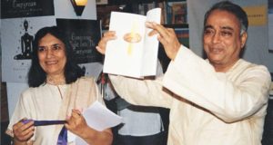 Presenting A Copy Of My First Book To Pramahamsa Swami Niranjanananda Sarawati, President – Bihar School Of Yoga, In 2003